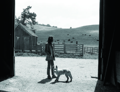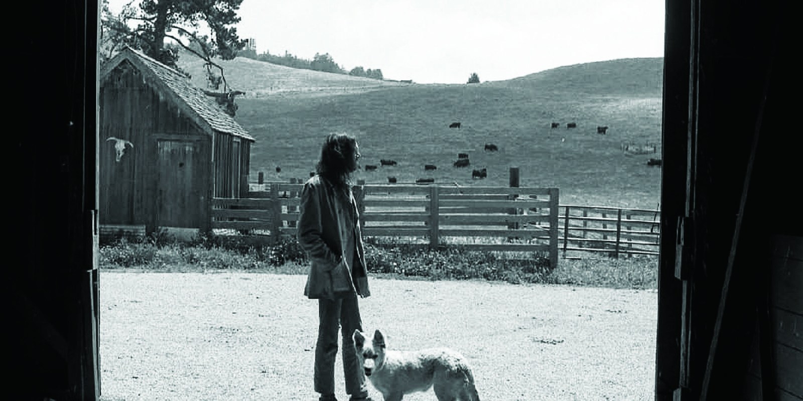 Un perro de orejas punteagudas mira de frente. Al fondo está la pradera curvilínea donde pastean catorce vacas que desde el establo se miran como puntos negros. A la izquierda, una casuchita de madera junto a una sequoya maltrecha y un cerco campesino. Al centro, Niel Young de lado, con el viento que sopla por detrás hacia donde sus ojos miran lejos la finca bautizada como Broken Arrow, que ha comprado a Louis Avila en Half Moon Bay, Redwood City, Carolina del Norte, en 1970.