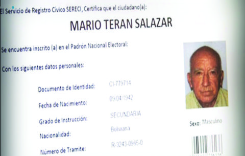 Entonces imprimió el certificado de inscripción electoral. “Válido sólo para trámites en el Serecí”, dice el documento y debajo está, en mayúsculas, el nombre que tanto había buscado, MARIO TERÁN SALAZAR… el asesino del Che Guevara.