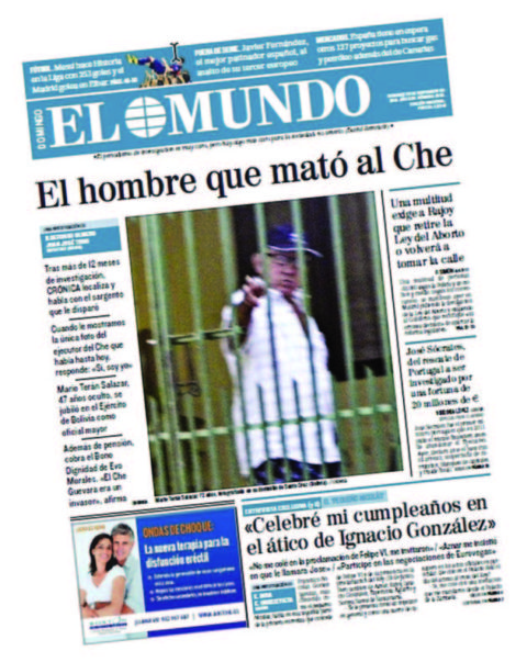 Después de una campaña de expectativa que se difundió en Madrid y las redes sociales, la crónica El hombre que mató al Che fue la apertura de la edición del diario El Mundo correspondiente al domingo 23 de noviembre de 2014.