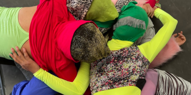 ¿Qué es lo propio? Este cuerpo es mío…obra de nadie es una obra de creación colectiva fabricada por Braian Nina, Belén Iñiguez, Camisita Carvajal, Christian Morales, Elena Filomeno, Gaba Claros, Juanqui Arévalo, Marie Giquel, Sofi Claros y algún demonio del futuro que invade este tiempo. Trance-carne camuflada en una obra de danza y en un título demasiado human-débil para las bombas que porta. Eso es la filosofía, y toda pretensión filosófica, un camuflaje o un vergonzoso fracaso. Lxs cinco ejecutantes íntegramente disfrazadxs (devoradxs por el disfraz) operan para una inteligencia y un cuerpo que no le pertenece a ninguno de ellxs. Así que toda obsolescencia proveniente de su agencia humana no llega a tener ninguna importancia en relación con la bestia colectiva encarnada mediante todo un despliegue de hechicería electrónica, haciendo de la carne un perfecto conductor para la zona de relámpagos salvajes y los trallazos de techno duro.