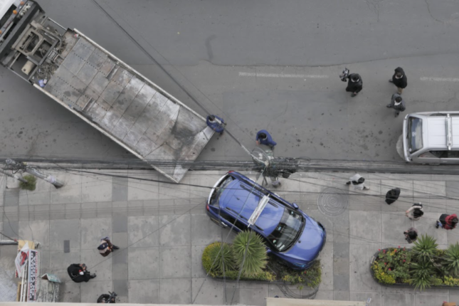 Asomarse a la ventana de un edificio y disponer de un teleobjetivo permite disfrutar de los “privilegios de la vista”. Desde accidentes de auto o funcionarios municipales intentando borrar grafitis de Mujeres Creando o, simplemente, frazadas tendidas al sol. La Paz en su cotidiano.