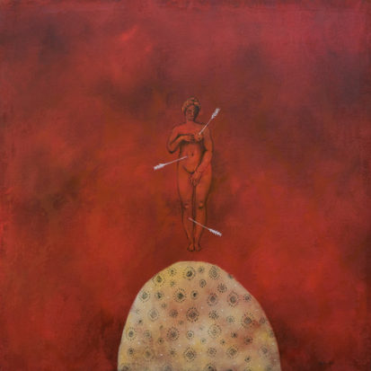 Después, una fuerza centrípeta, gravitante, nos conduce nuevamente a la casa y, sin darnos tregua ni respiro, nos sumerge en el cuerpo. Éste, compuesto por mandrágoras, raíces, plantas curativas, ungüentos, Santas Sebastianas, corazones, texturas, colores y aromas. Cuerpo atravesado. Cuerpo botánico. Cuerpo flotante. Cuerpo refugio. Cuerpo medieval y contemporáneo. Cuerpo rojo. Cuerpo pintura.