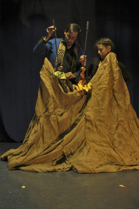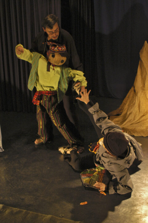 Los estudios universitarios debieron, así, dejar tiempo –medio tiempo— para que el titiritero pudiese desarrollarse. Su primer sueldo –“poquito, como todos los de cultura”– se lo dieron esos objetos apenas Sergio asumió como un instructor del taller, aunque en el haber, más que los centavos cuentan en la memoria de Sergio las reposiciones de creaciones de El Chasqui –El brujo soplador, El bandido dinamita, Los ladrones y El encantador de mariposas–, y las creaciones nuevas como El poeta o yo de Maiakovski que se estrenó en la Casa de la Cultura.