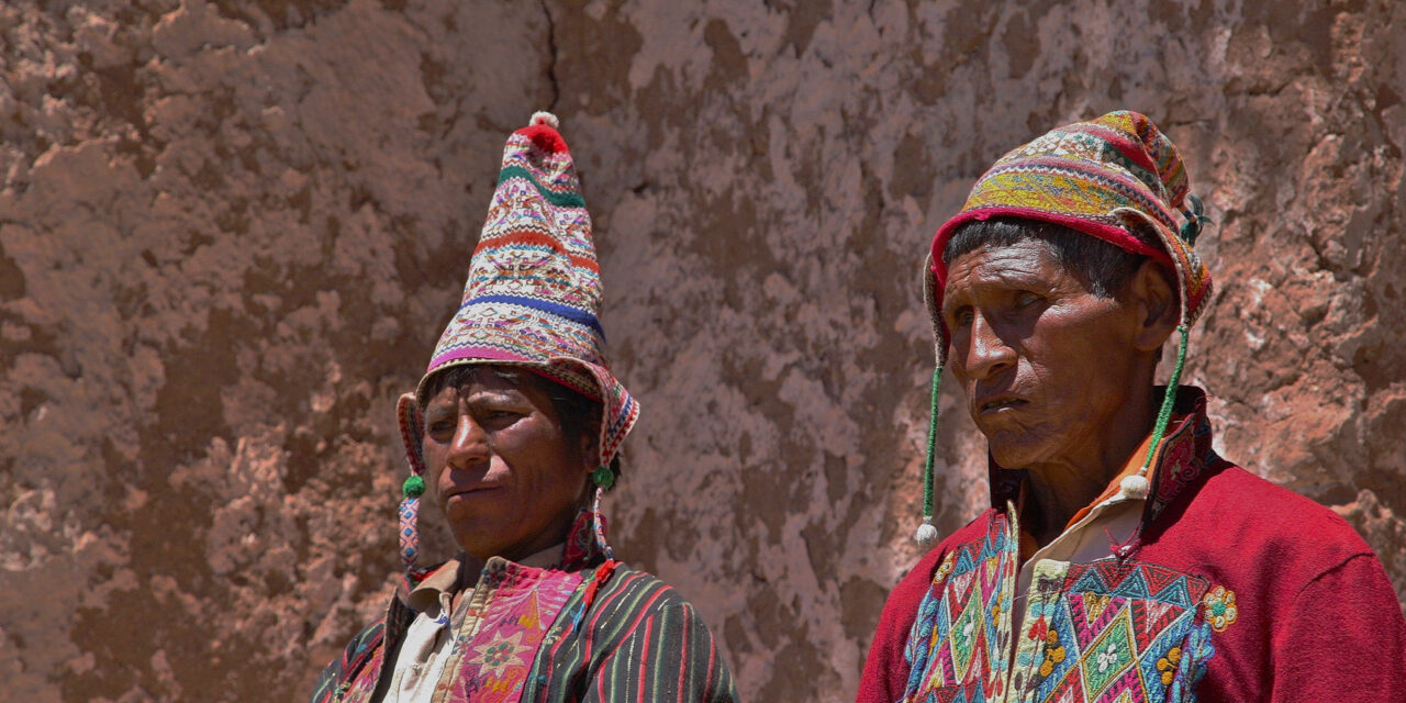 El pueblo está formado por no más de una docena de chozas de adobe con techo de paja y, a medida que nos acercamos, los niños y los perros ladrando corren a nuestro encuentro. Confiados, los niños nos toman de la mano, sin mostrar aprehensión alguna, riendo y hablando en quechua. Probablemente no han visto a menudo extraños, pero reconocen a Pedro, y nos llevan a la pequeña plaza situada frente a la iglesia, donde unas sesenta personas, la población entera de Caramachi, nos esperan vestidos con sus trajes tradicionales.