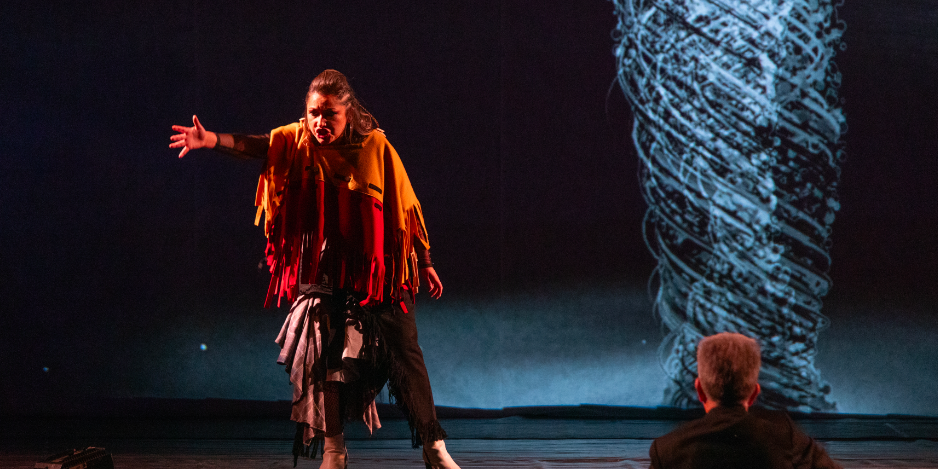 En tal contexto, yo esperaba de Mati, la estupenda mezzosoprano Paola Alcócer, que se mostrase múltiple, multívoca, pero no ocurre así y éste es, para mí, el mayor pendiente. Desde el vestuario y el peinado, esta Mati que no en vano llega desde la platea y se va por allí, en escena parece encorsetada. Si tan solo, tal vez, cambiase de formas, detalles del ropaje, el cabello… la “muchedumbre” del origen se haría más presente.