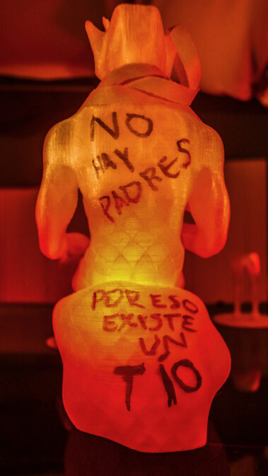 El no-minero por discapacidad irá mostrando que quizás por esta su condición que le obliga a estar al margen, como se ha dicho, él puede observar, pensarse e intentar descorrer el aire viciado para descubrir que, por ejemplo, si el tío de la mina tiene poder es porque los padres, como el suyo, están ausentes. O que el tío, le parece recordar, se llama Jorge también con todo lo que esto puede representar. Asimismo, este Jorge fuera de norma se anima a enunciar las pautas que lo definen socialmente, es decir estereotipadamente, como hombre: los músculos del vientre marcados, firmes los de los brazos, el pene grande… Su imagen es autodescrita con verdad, también y todavía con mentira.