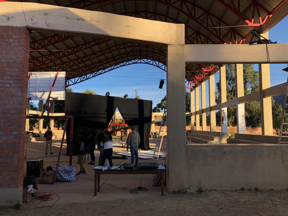 Pocas horas antes de la hora programada para el inicio, llega un dirigente de la comunidad y dice que el espacio destinado a los espectadores es muy pequeño, ya que llegará gente de muchas comunidades y es probable que se llene toda la cancha. Modificar a esa hora la ubicación del escenario y ampliar la delimitación de la platea sería muy problemático. Gonzalo junto al equipo evalúa la situación y decide no modificar el espacio ya trazado para la función. Todavía hay algunos detalles técnicos que resolver, pero antes el equipo de montaje decide hacer una pausa para tomar café con el queque horneado por Alice al amanecer. En el equipo de montaje de la estructura física y técnica, además de los actores-músicos se encuentran Bernardo Rosado, don Isi, el papá de Gonzalo, don Ulises y Celia.
