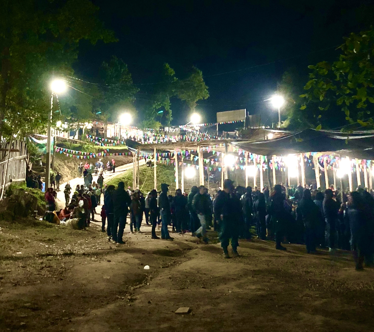 Parece que el baile es lo que esperan durante el día lxs zapatistas. No importa el área ni la edad. La vergüenza es colonial, acá no entra. Las ganas se amontonaron y nos volvemos miles de hormiguitas moviéndonos a tiempo o destiempo. Las cinco amigas quieren ir adelante. Vamos. Me presentan a unos amigos del mismo caracol. Ellas le dicen algo a uno que se me acerca, se presenta y me invita a bailar. No una canción, ni dos, ni tres. No hay corte. Ellas siguen bailando cerca en grupo hasta que unos chicos de otro caracol se les acercan y las invitan a bailar. Una ni lo duda, a otras dos les cuesta acceder pero terminan aceptando. Cruzamos miradas entre mujeres, yo me sonrío. ¿Nos volveremos a ver? Las estrellas arriba algo estarán tramando.